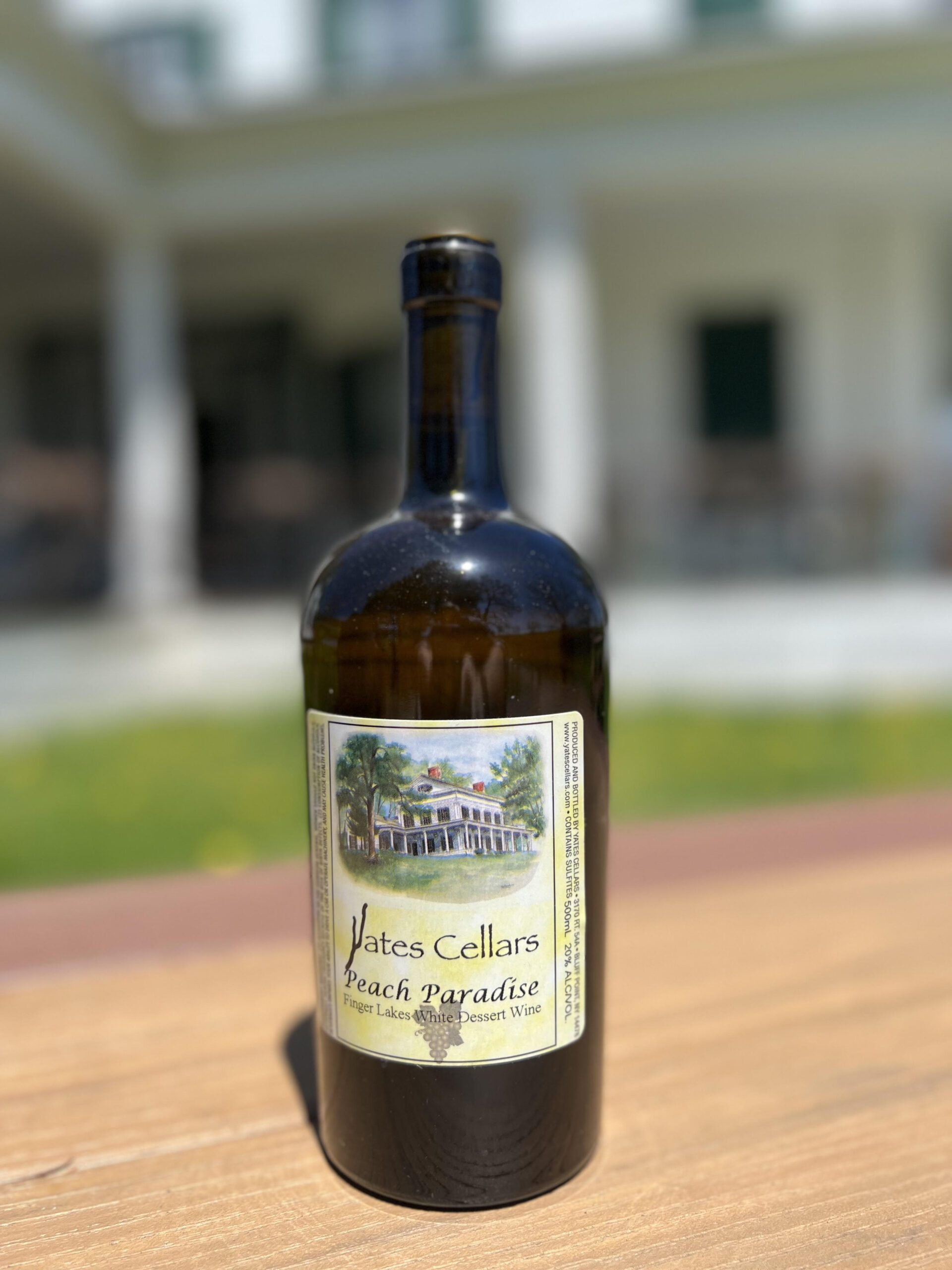 Blend of Estate grown Itasca and Vidal. A nice peach finish on this wine that gets Fortified with grape alcohol.